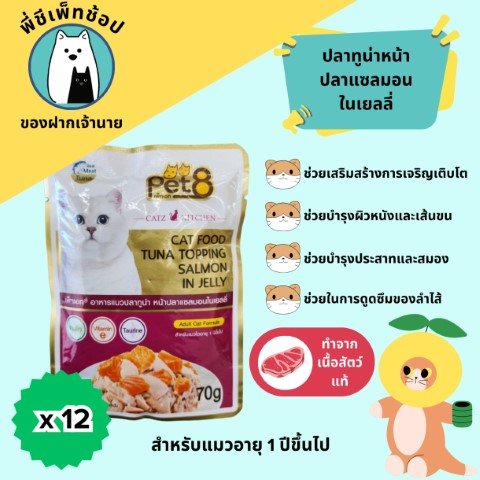Be the first to review “Pet 8 Tuna Topping Salmon in Jelly ซอง 70g”